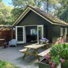 Het Boshuisje heeft een ruim terras met picknick-tafel én een overkapping met comfortabele stoelen. Ook is er een buitenhaard die met speciale houtblokken gestookt kan worden (verkrijgbaar bij AH of via ons).